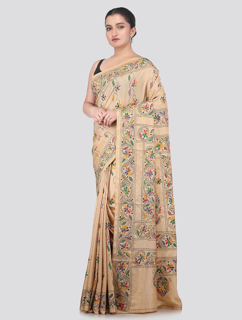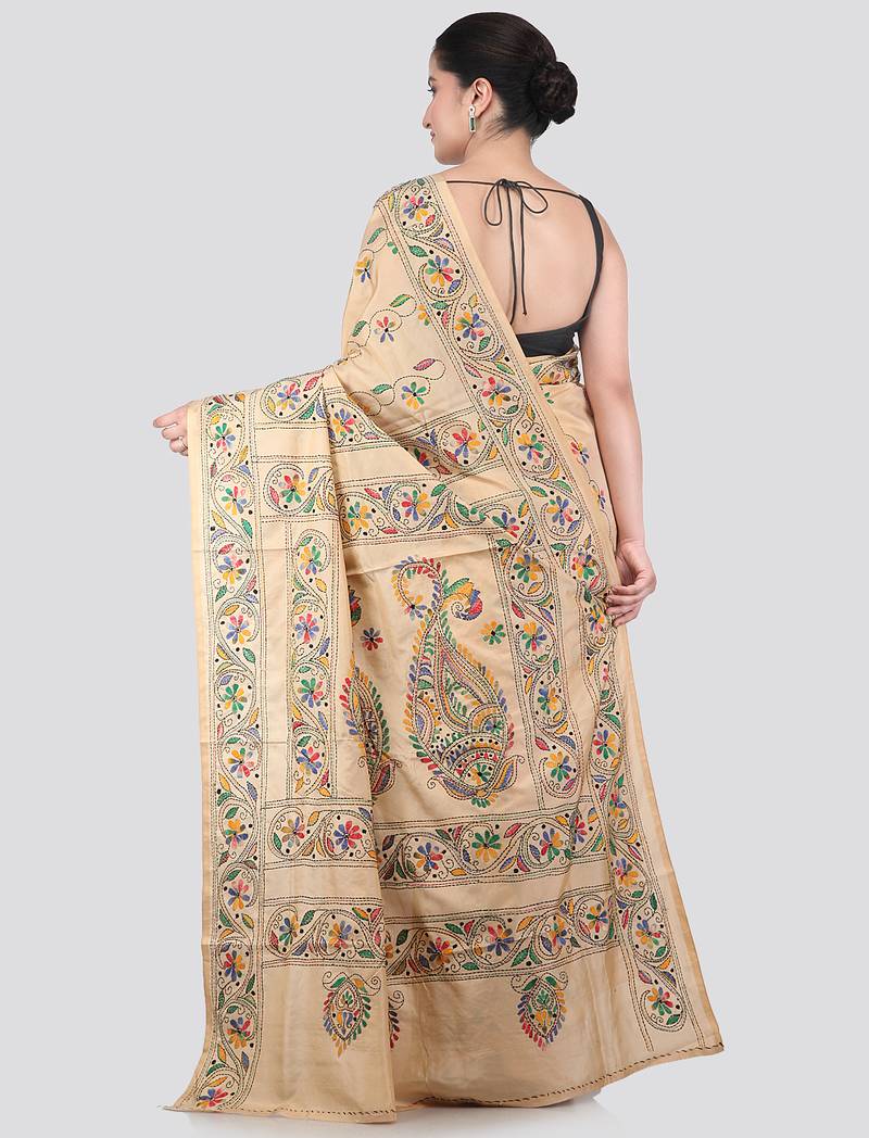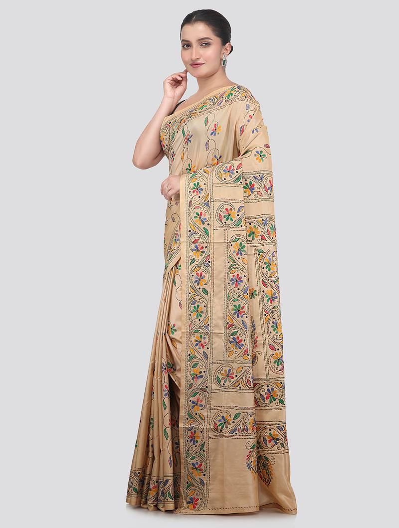 Product Name | Beige Handloom Silk Embroidered Katha Stitch Work Saree With Blouse Piece | |