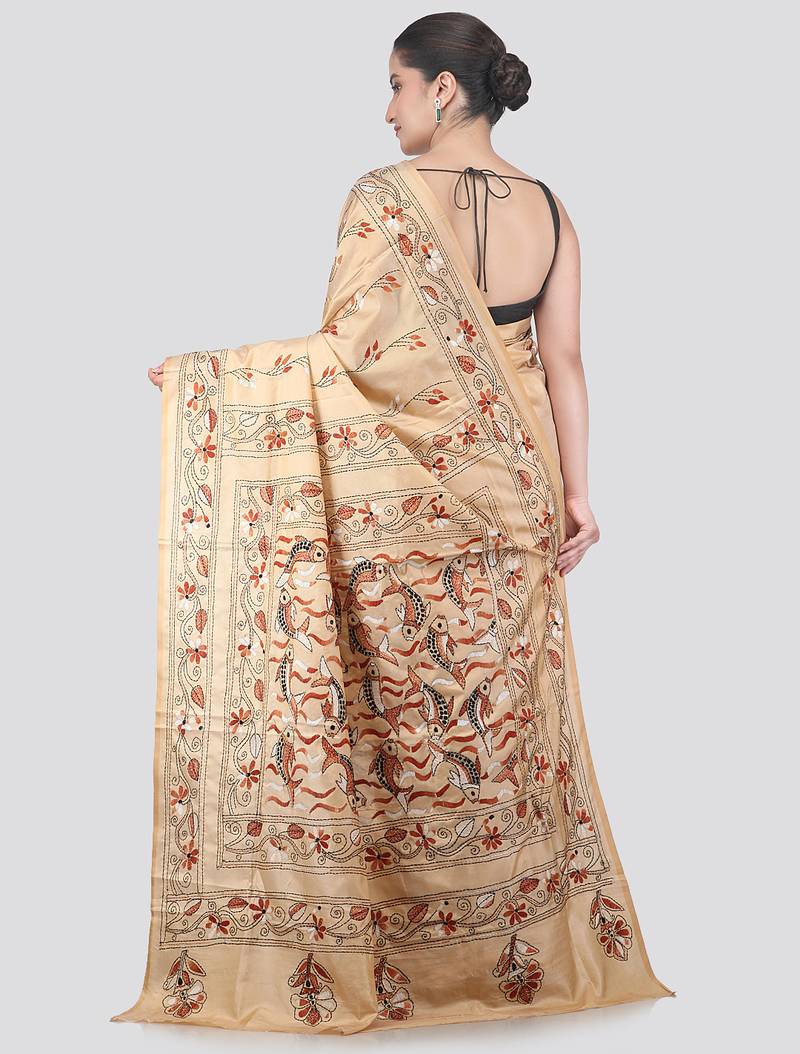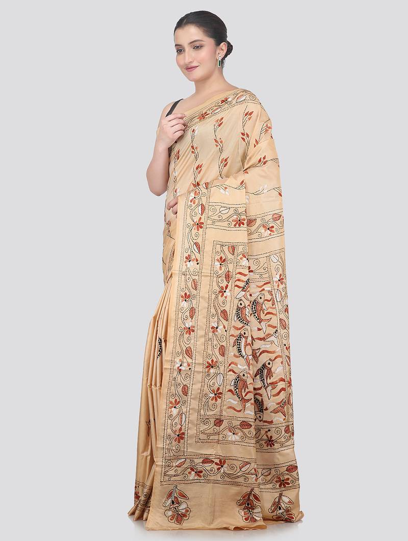 Product Name | Beige Handloom Silk Embroidered Katha Stitch Work Saree With Blouse Piece | |