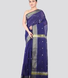 Blue handloom cotton bleand saree with blouse piece