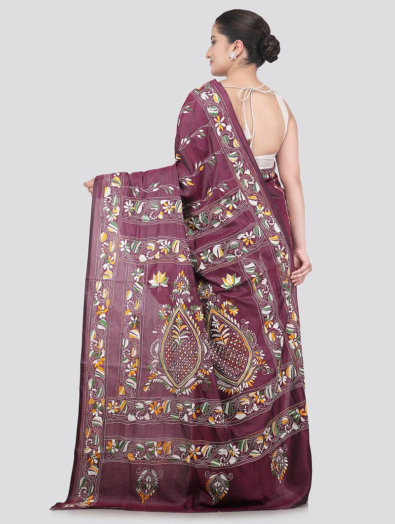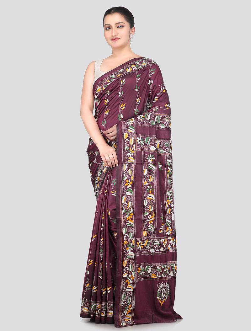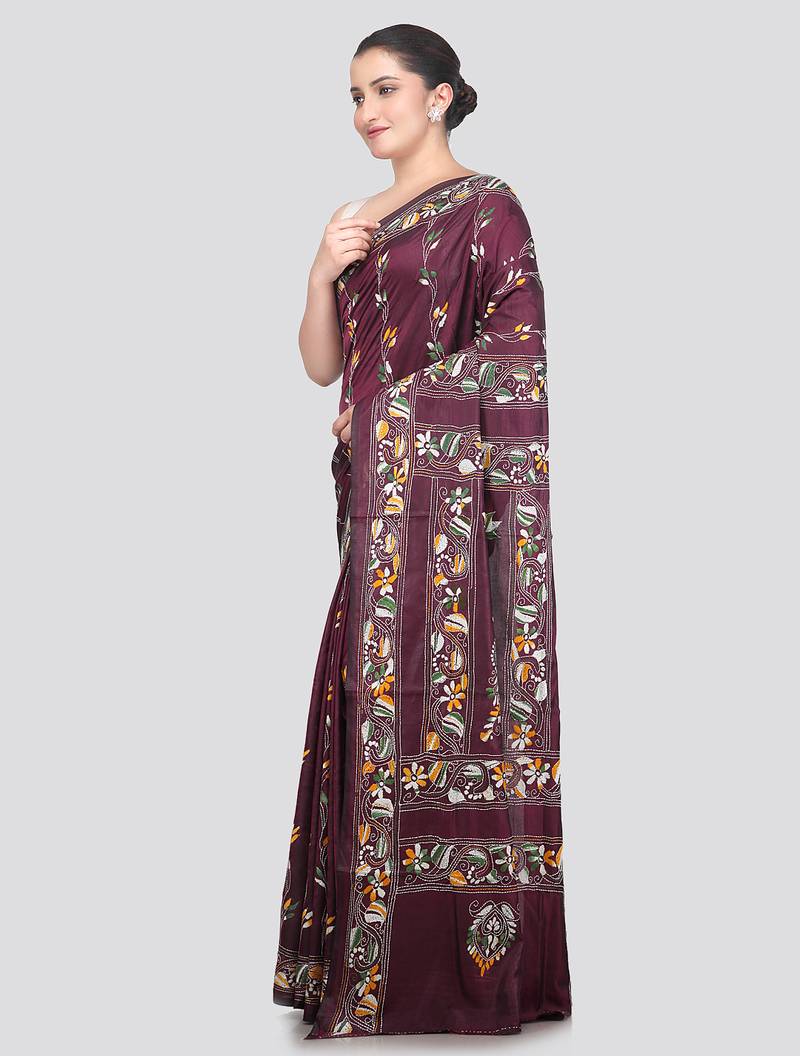 Product Description | Crafted From Silk With An Intricate Hand Embroidered Kantha Stitch, This Piece Is A Timeless Bengali Tradition. Each Saree Is Uniquely Designed By Skilled Artisans, Featuring Fine Kantha Work Patterns That Reflect Heritage Craftsmanship. Comes With A Matching Blouse Piece For A Complete Ethnic Ensemble. Ideal For Weddings, Festivals, Parties, Cultural Events, And Traditional Celebrations. Lightweight Silk Fabric Ensures Comfort While Maintaining A Royal And Graceful Ethnic Look. |