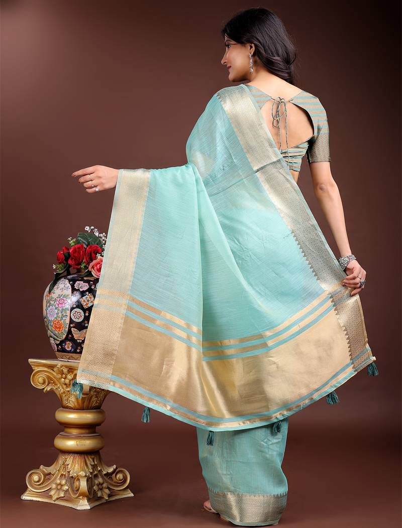 | • | Saree | : | Color- Sea Green / Fabric- Cotton |
