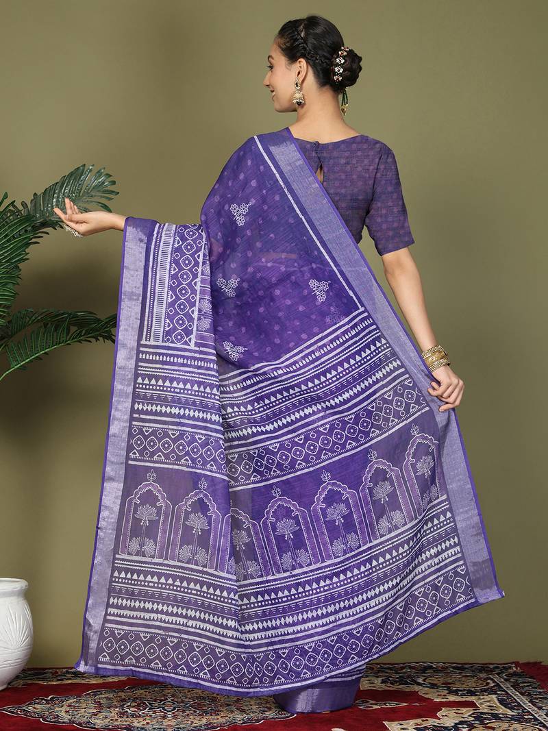 | • | Saree | : | Color- Violet / Fabric- Cotton |