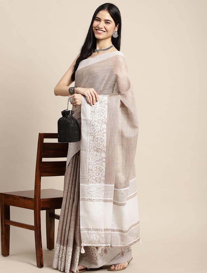 | Product Name | Beige Woven Zari Border Linen Cotton Saree | |
