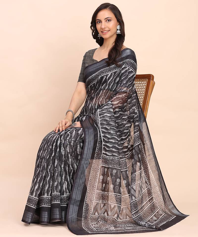 | Product Name | Black Color Printed Linen Cotton Saree | |
