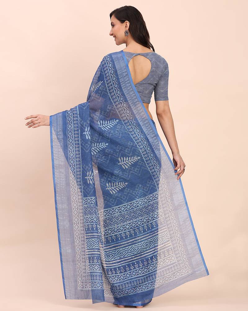 Pradeep Fasion Linen Cotton Printed Zari Border Work Beautiful Women's Exclusive Casual Formal Official Party Wear Traditional South Indian Base Saree With Un Stitched Blouse