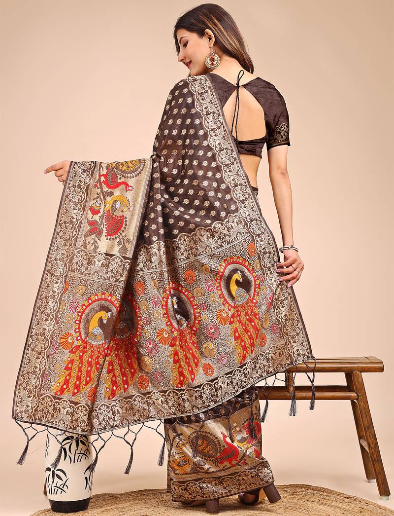 | Product Name | Brown Color Color Woven Linen Cotton Saree | |