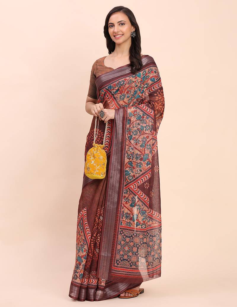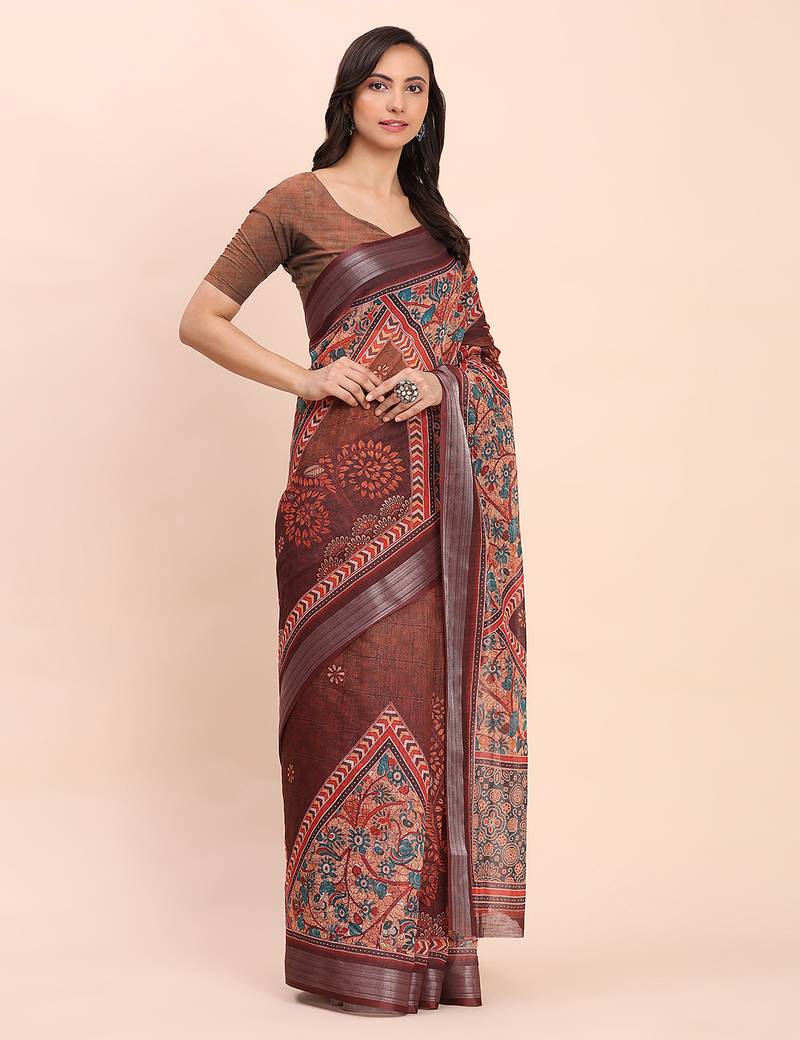 | Product Name | Brown Color Printed Linen Cotton Saree | |