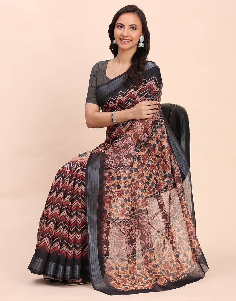 | Product Description | Pradeep Fasion Linen Cotton Printed Zari Border Work Beautiful Women's Exclusive Casual Formal Official Party Wear Traditional South Indian Base Saree With Un Stitched Blouse |