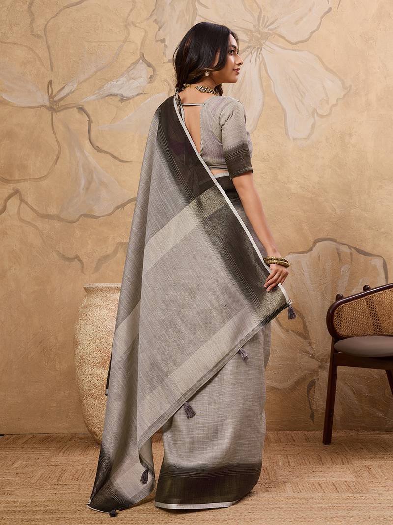 | Product Name | Chocolate Grey Color Solid Linen Cotton Saree | |