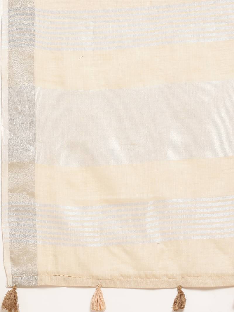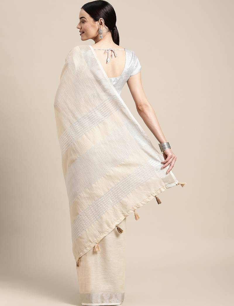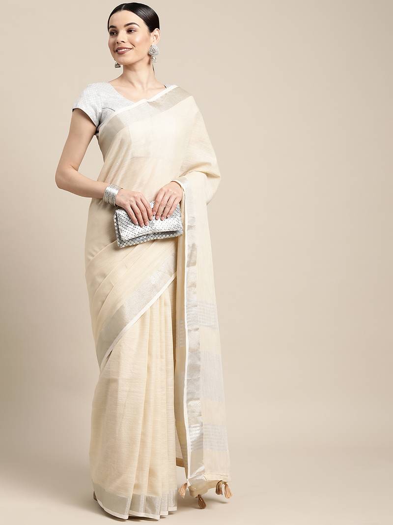 | Product Name | Cream Color Solid Linen Cotton Border Saree With Blouse | |