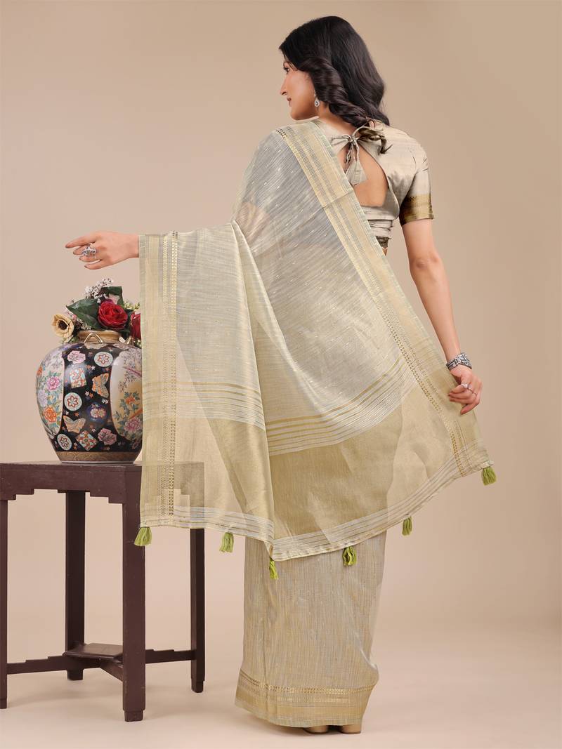 | Product Name | Cream Color Solid Plain Orgneza Saree | |