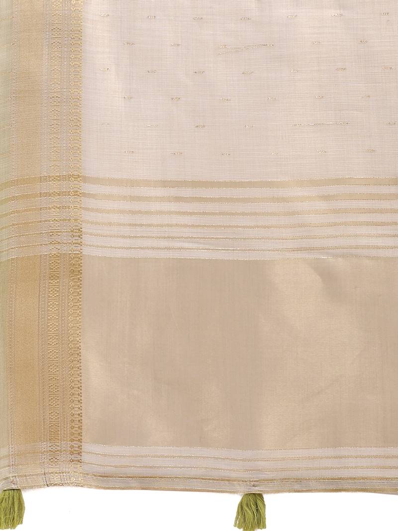 Cream color solid plain orgneza saree