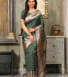 Dark green color zari woven banarasi art silk saree