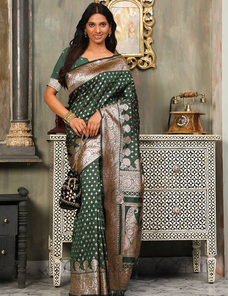 | Product Name | Dark Green Color Zari Woven Banarasi Art Silk Saree | |