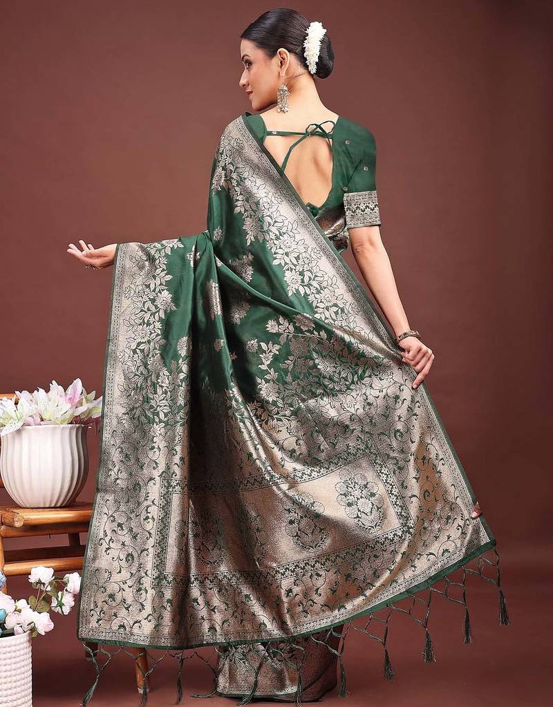 | Product Name | Dark Green Color Zari Woven Banarasi Art Silk Saree | |