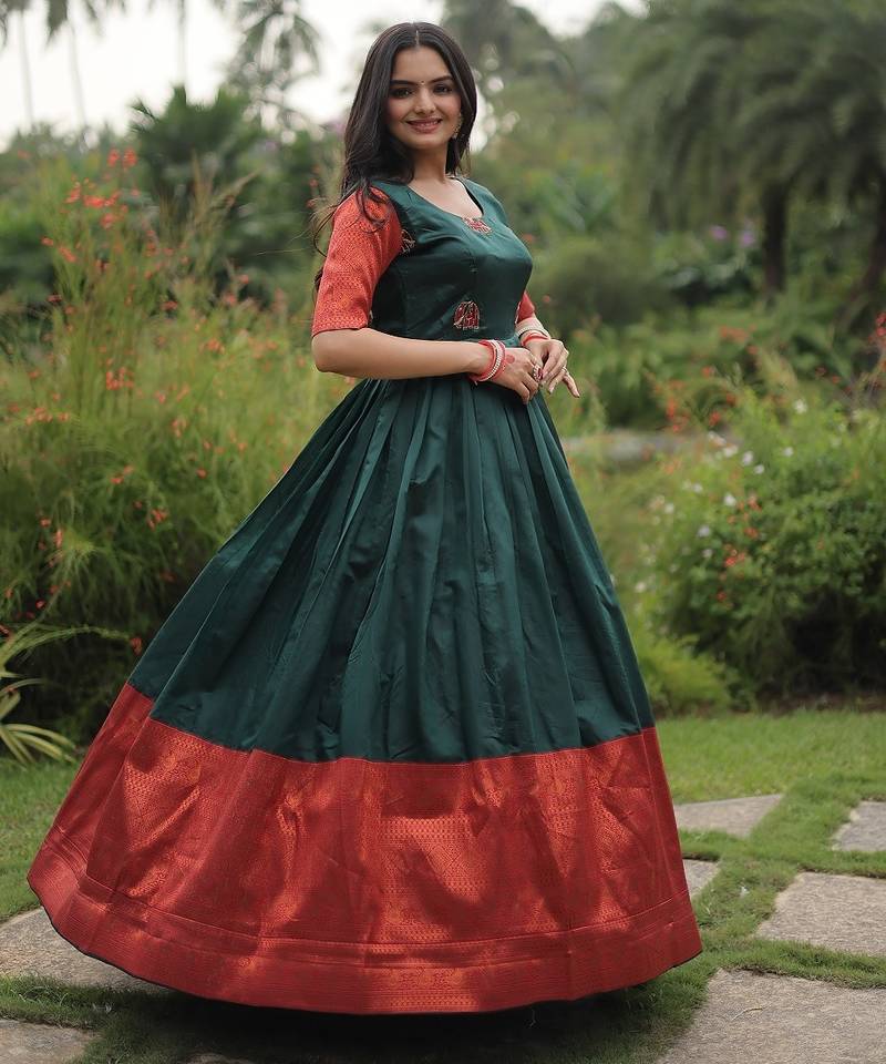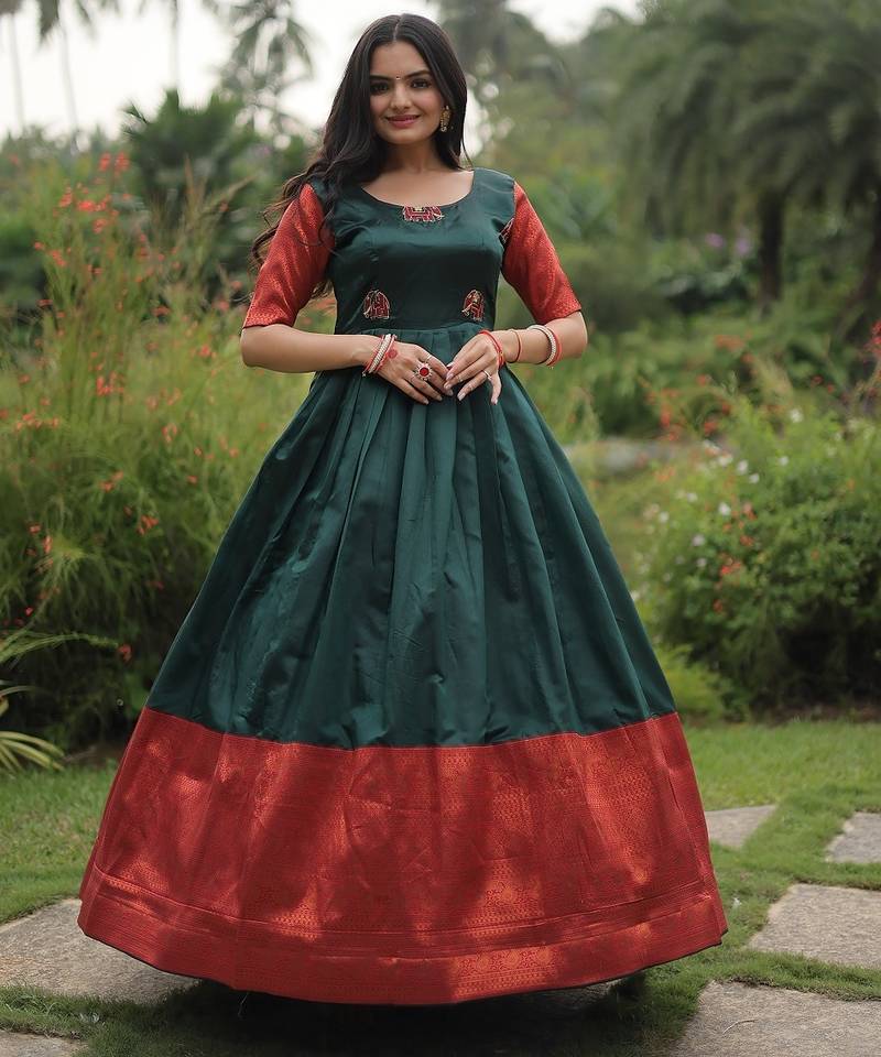 | Product Name | Green Color Banarasi Jacquard Weaving Gown | |