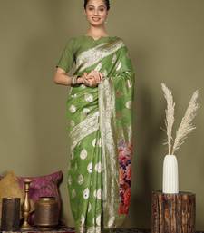 | Product Name | Green Color Linen Cotton Woven Work Flower Pallu Saree | |