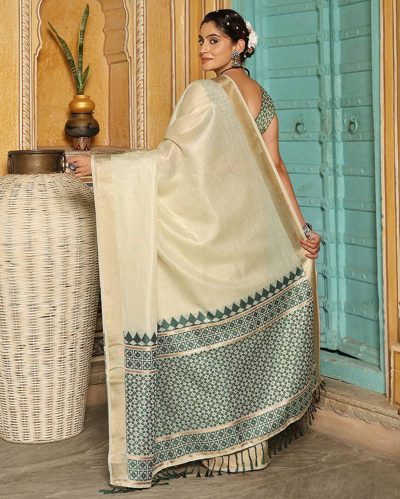 | Product Name | Green Color Woven Border & Pallu Linen Saree | |