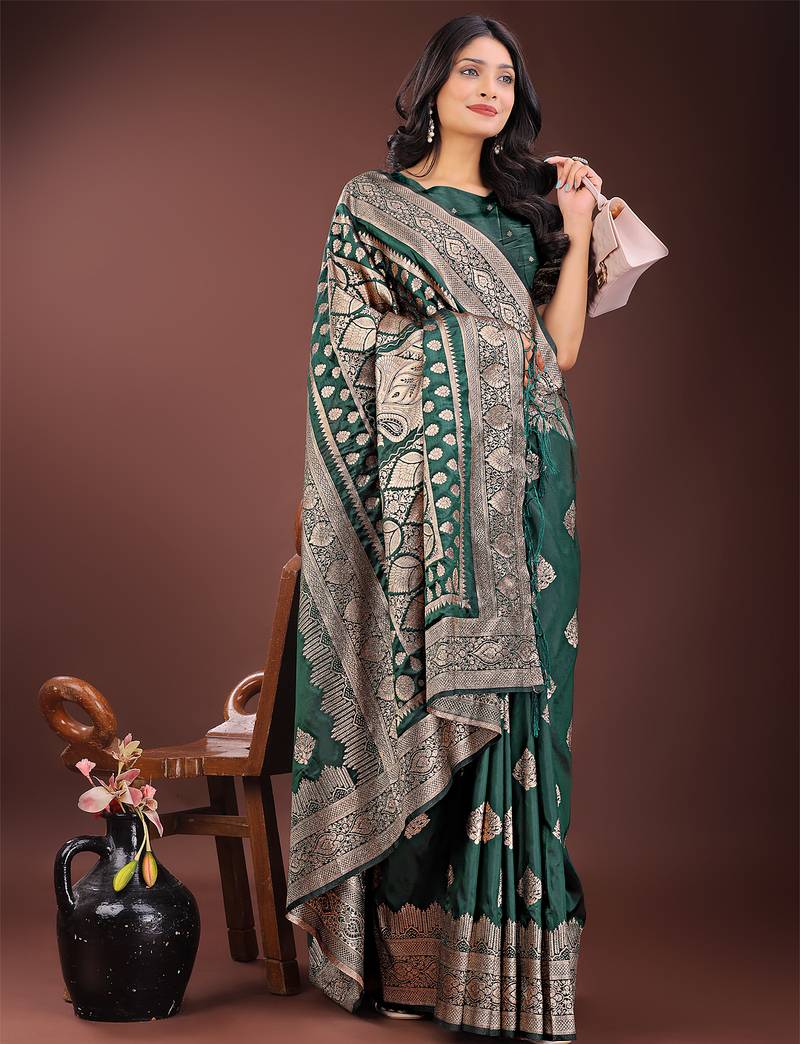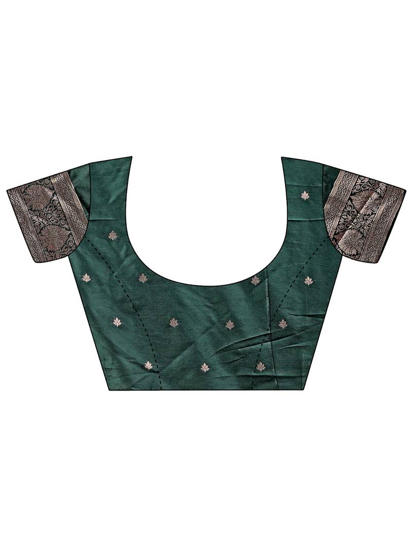 Green color woven art silk saree with blouse