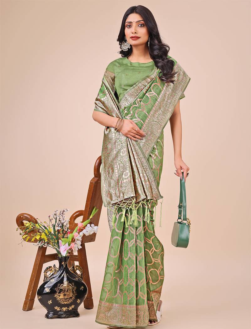 | Product Name | Green Color Woven Work Linen Cotton Saree | |