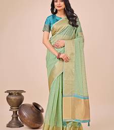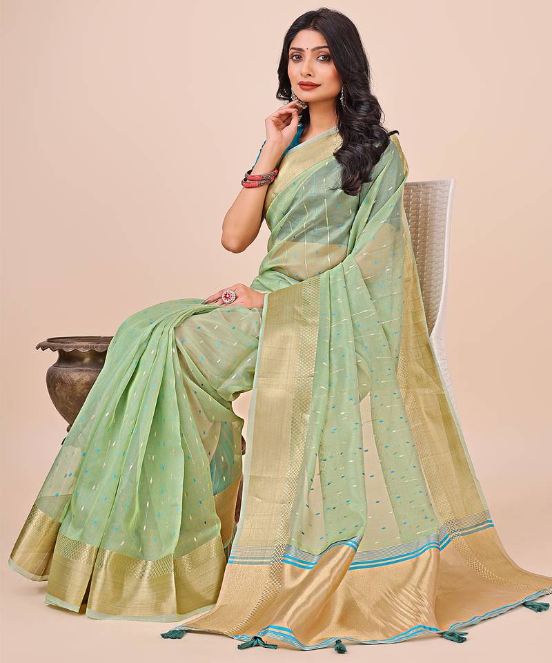 Green color zari border work orgenza saree with blouse