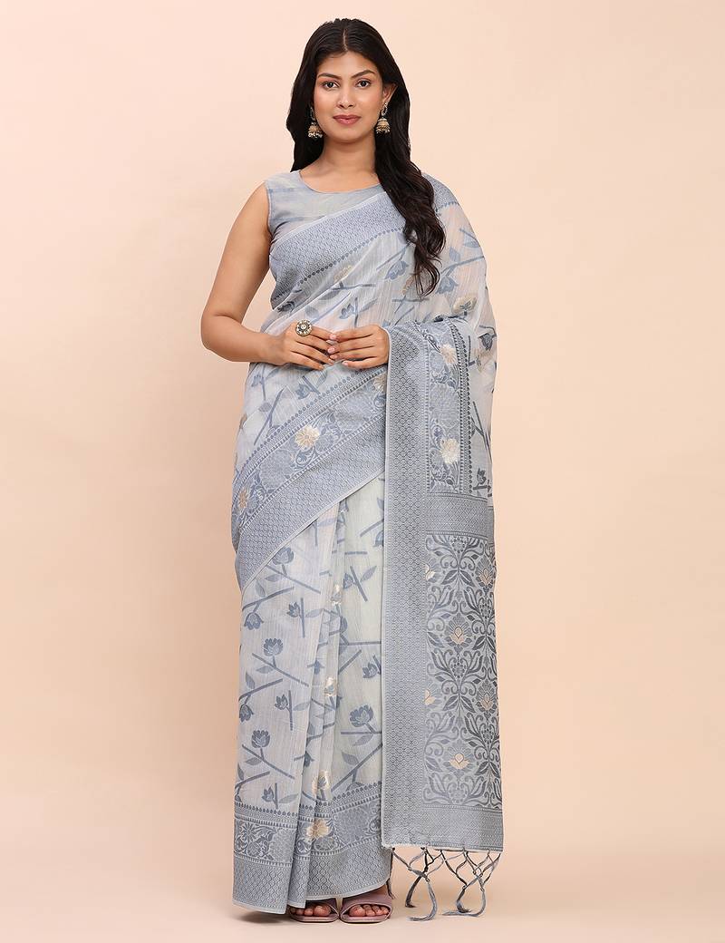 | Product Name | Grey Color Linen Cotton Woven Saree With Blouse | |