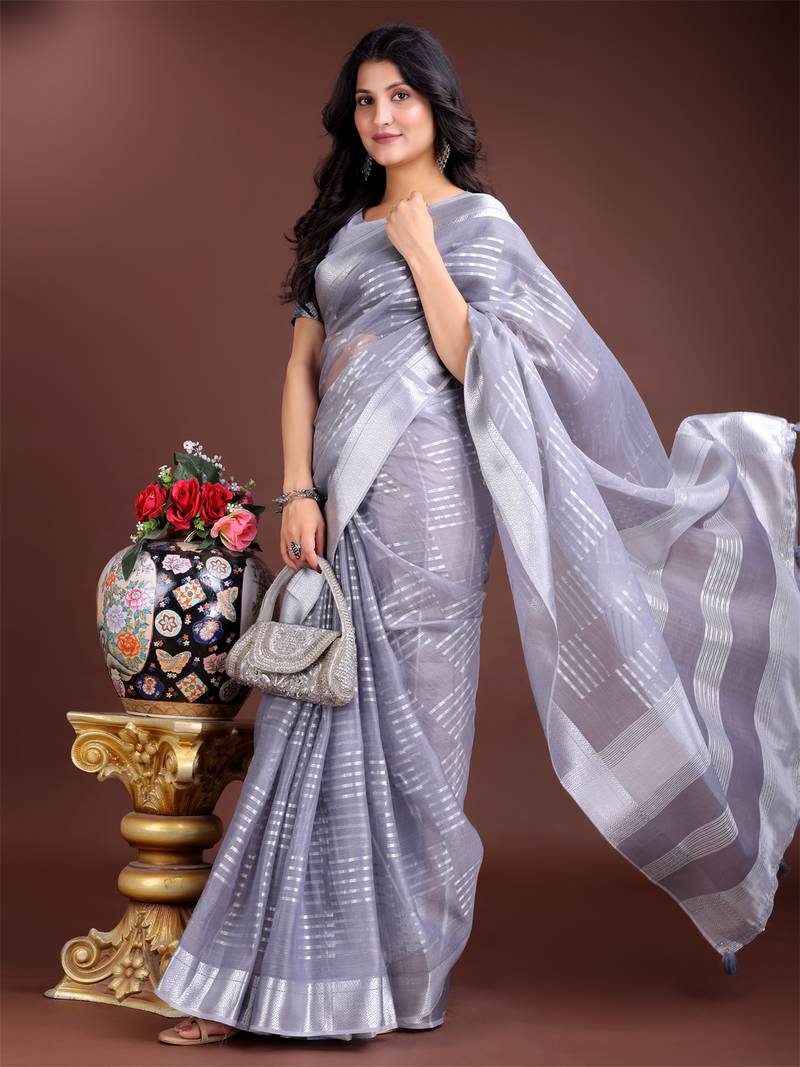 | Product Name | Grey Color Lining Orgenza Zari Border Saree | |