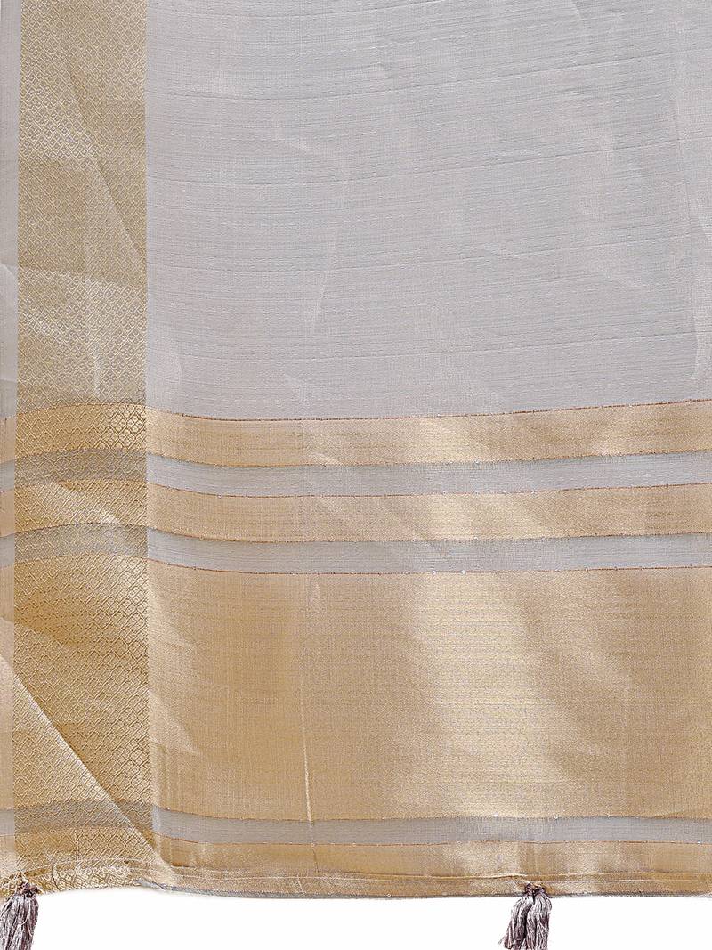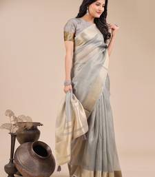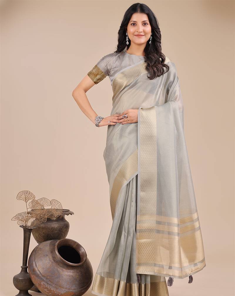 Grey color woven orgenza saree with blouse