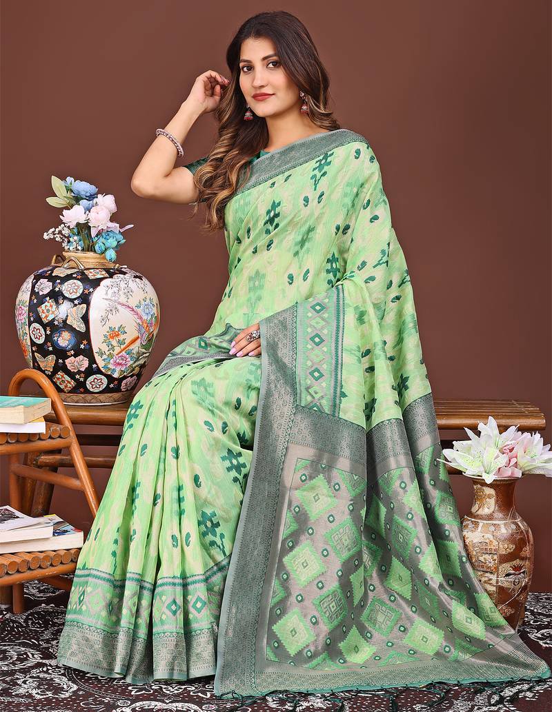 | Product Name | Light Green Color Embroidered Linen Cotton Saree | |