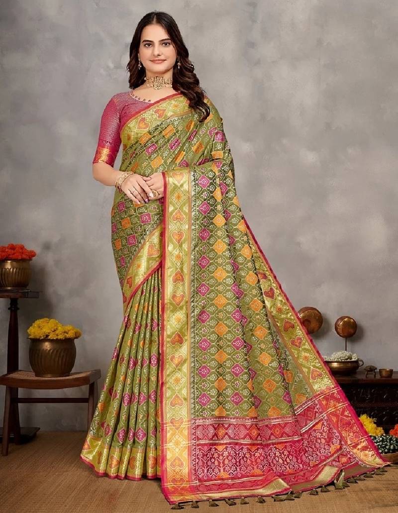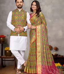 | Product Name | Mehandi Green Color Jacquard Weaving Silk Couple Combo Men's Kurta & Pajama Koti & Women Saree Set | |
