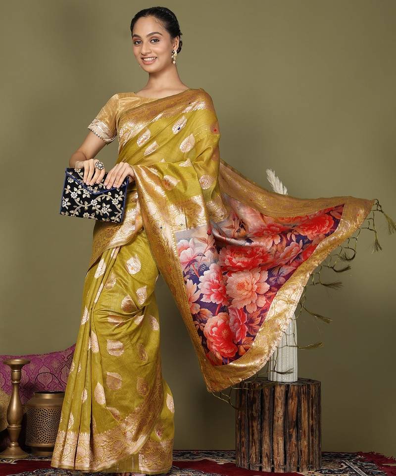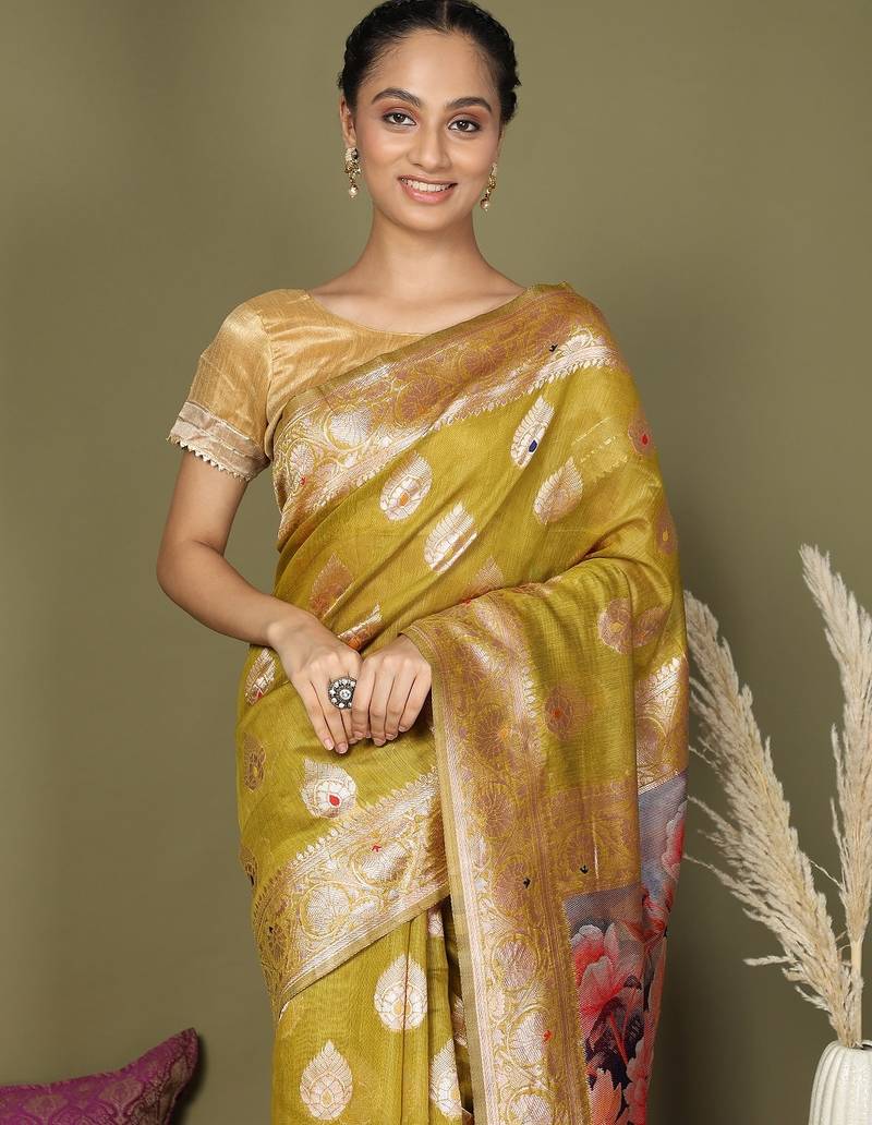 | Product Name | Mehandi Green Color Linen Cotton Woven Work Flower Pallu Saree | |