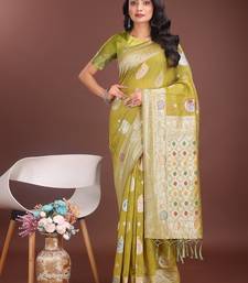 Musturd color linen cotton zari weaving saree with blouse