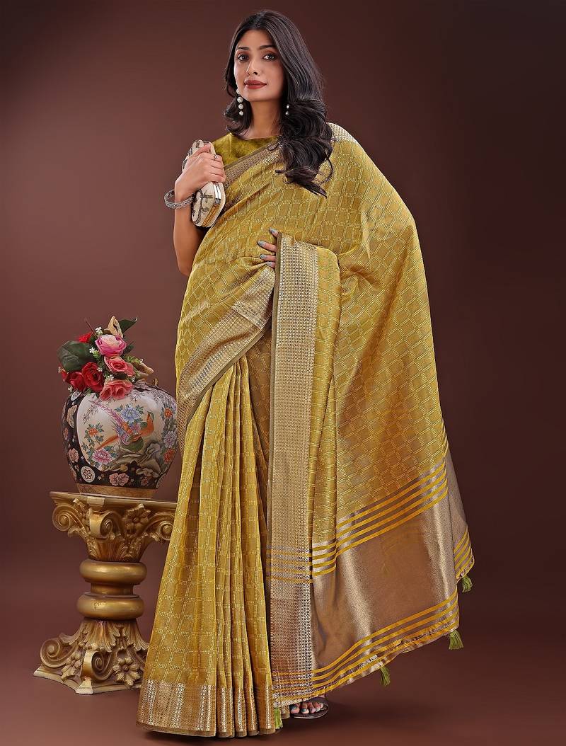 Musturd color orgenza zari border saree with blouse