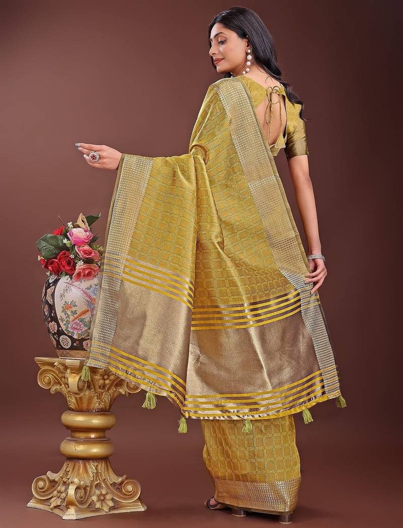 | Product Name | Musturd Color Orgenza Zari Border Saree With Blouse | |