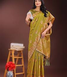 Musturd color woven work linen cotton saree