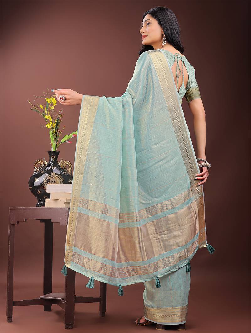 | Product Name | Olive Green Color Plain Zari Border Orgenza Saree | |