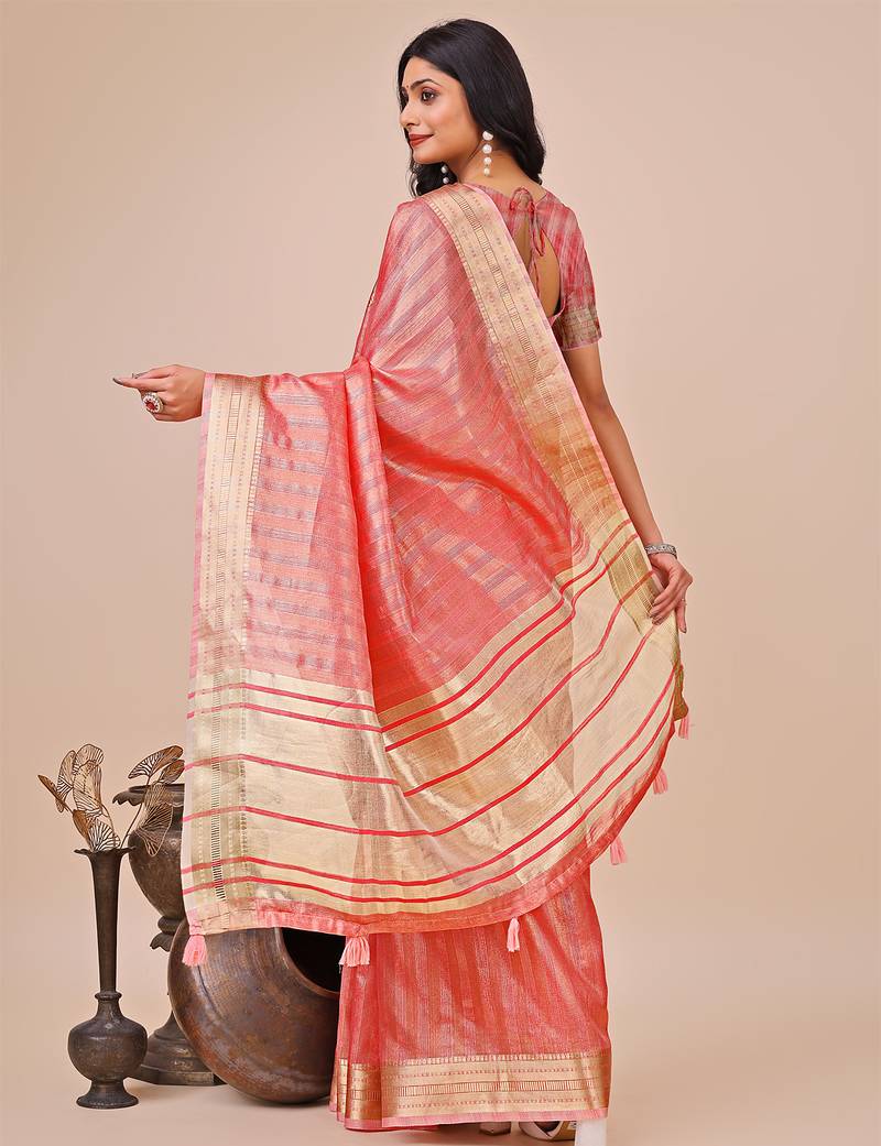 | Product Description | Pradeep Fasion Orgenza Zari Stripe Solid Work Beautiful Women's Exclusive Casual Formal Official Party Wear Traditional South Indian Base Saree With Un Stitched Blouse |