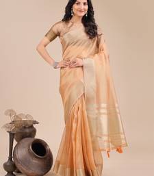 Orange color woven orgenza saree with blouse