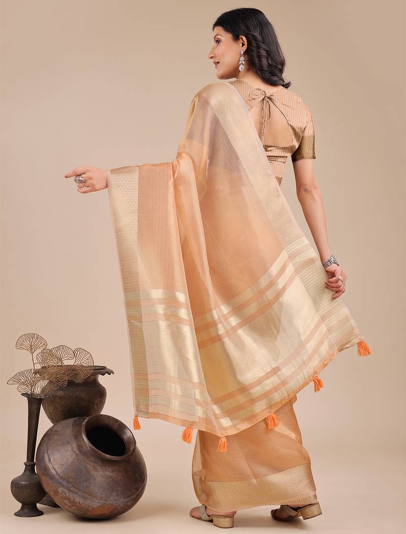 | Product Name | Orange Color Woven Orgenza Saree With Blouse | |