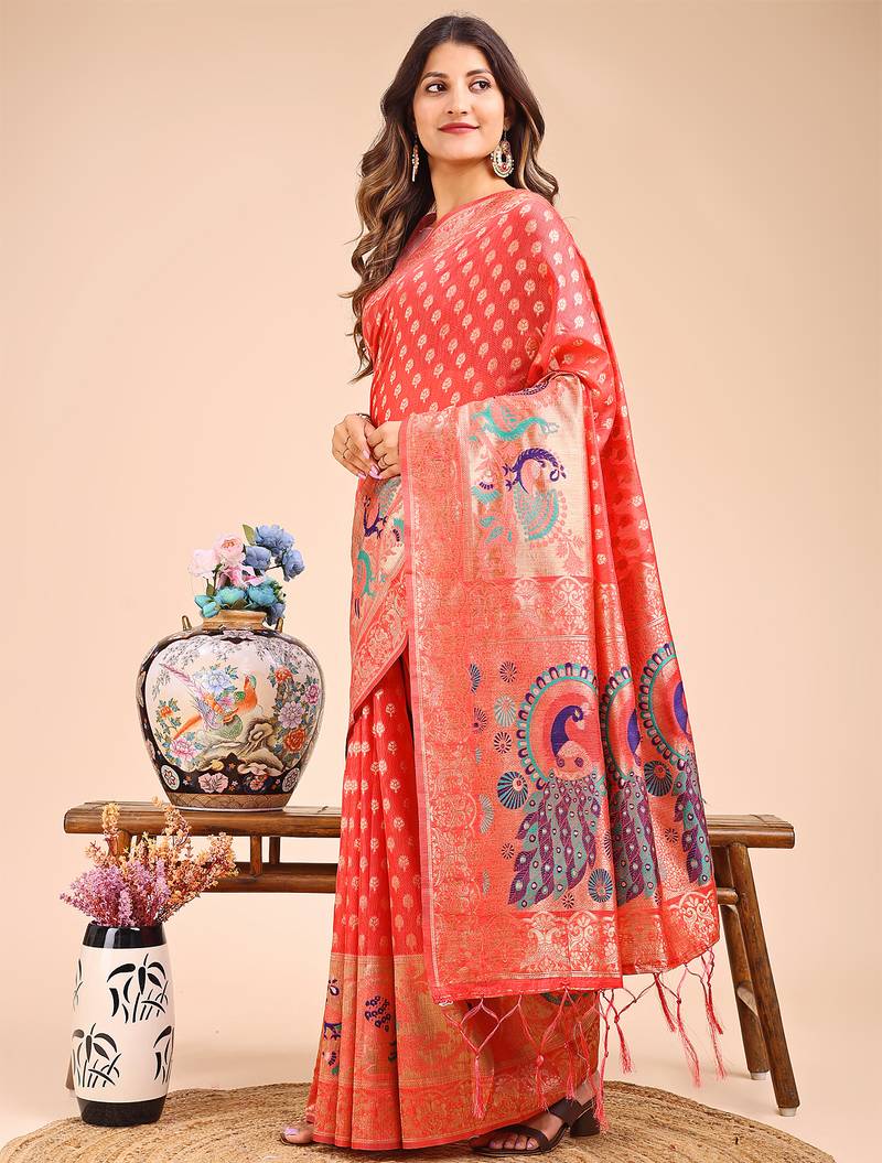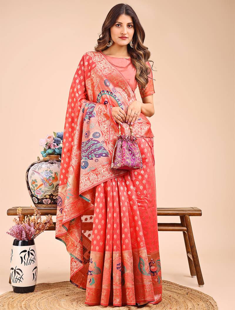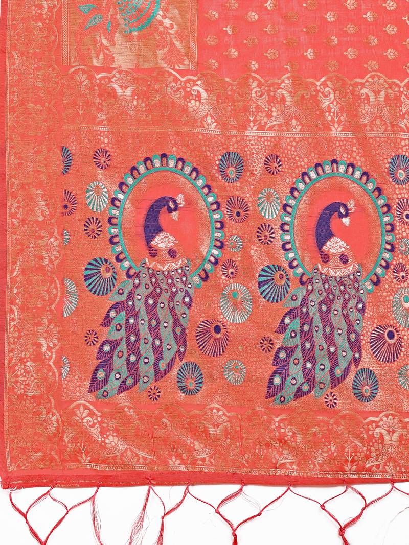 | Product Name | Peach Color Color Woven Linen Cotton Saree | |