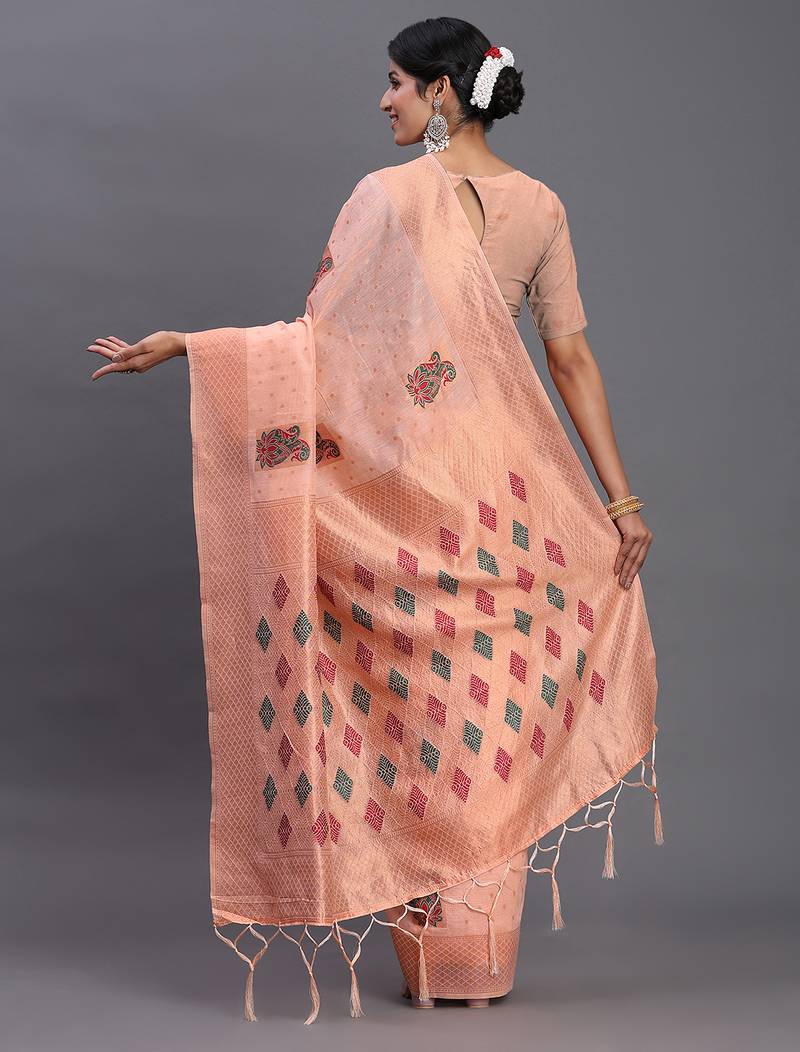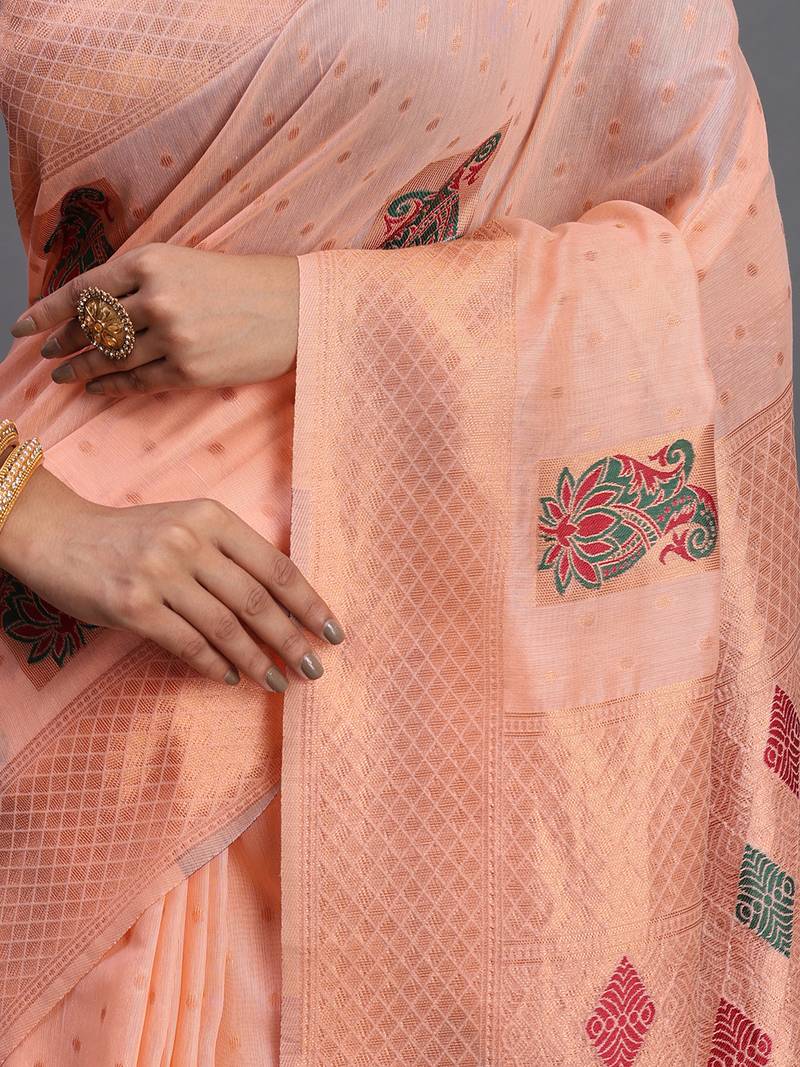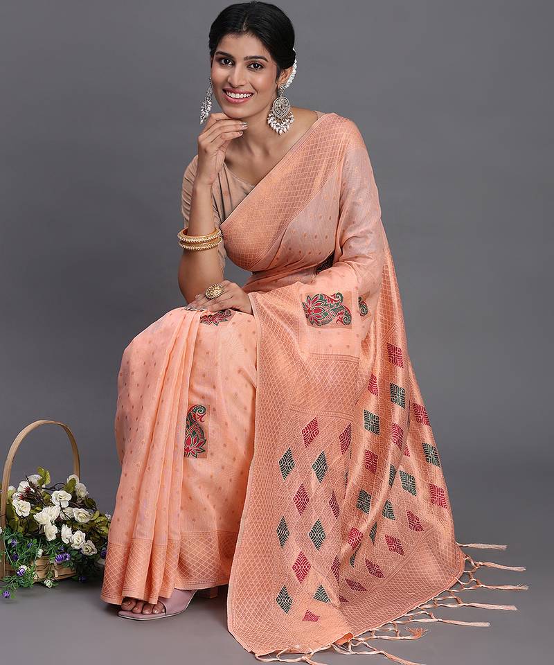 | Product Name | Peach Color Woven Work Linen Cotton Saree | |