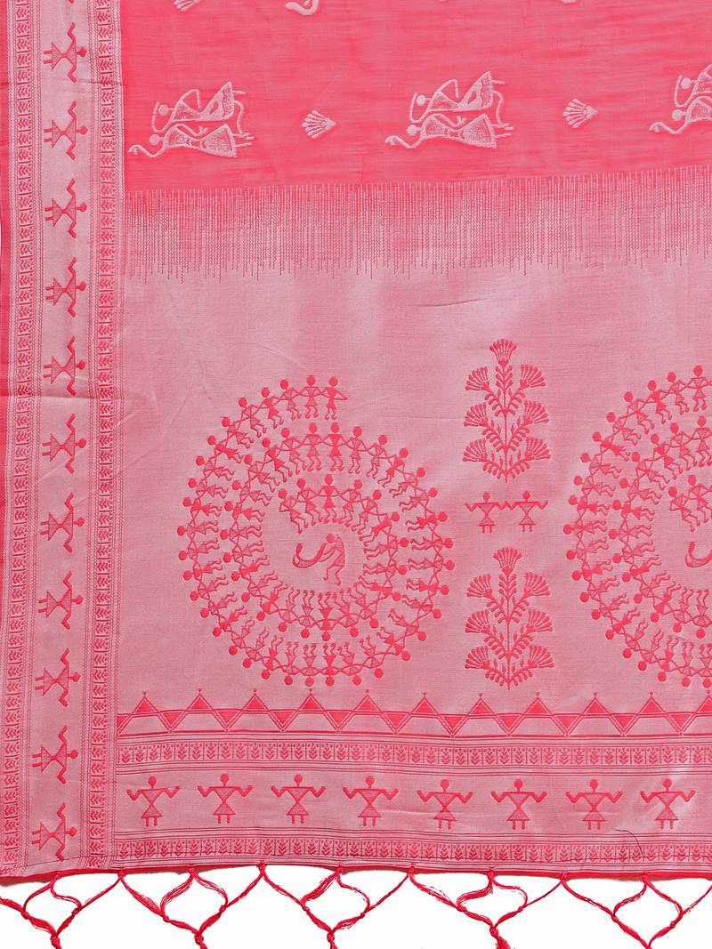 | Product Name | Pink Color Embroidered & Woven Linen Cotton Saree | |