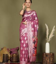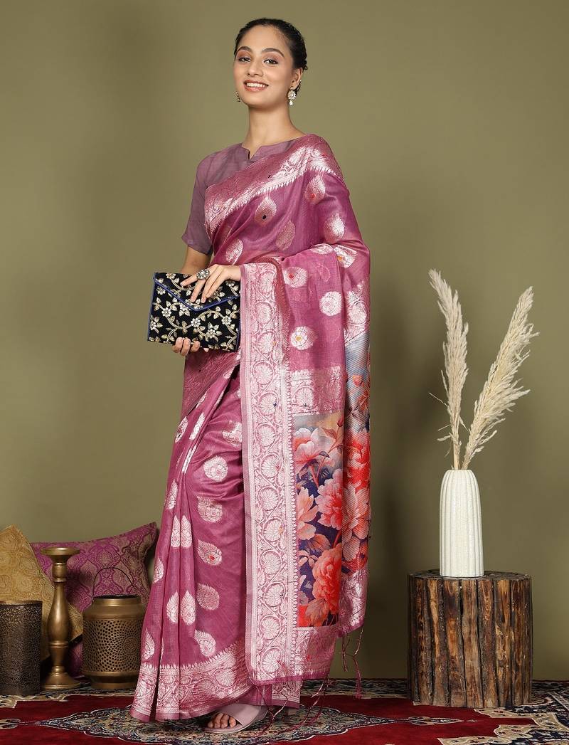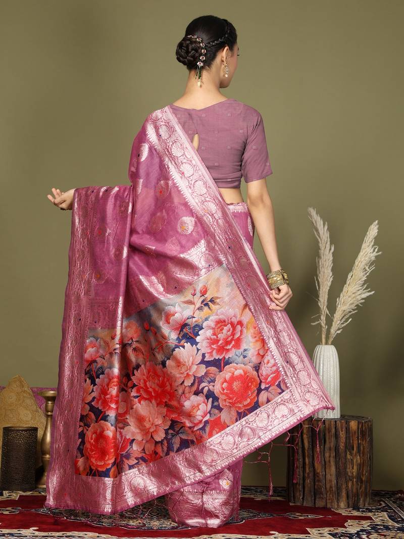 | Product Name | Pink Color Linen Cotton Woven Work Flower Pallu Saree | |