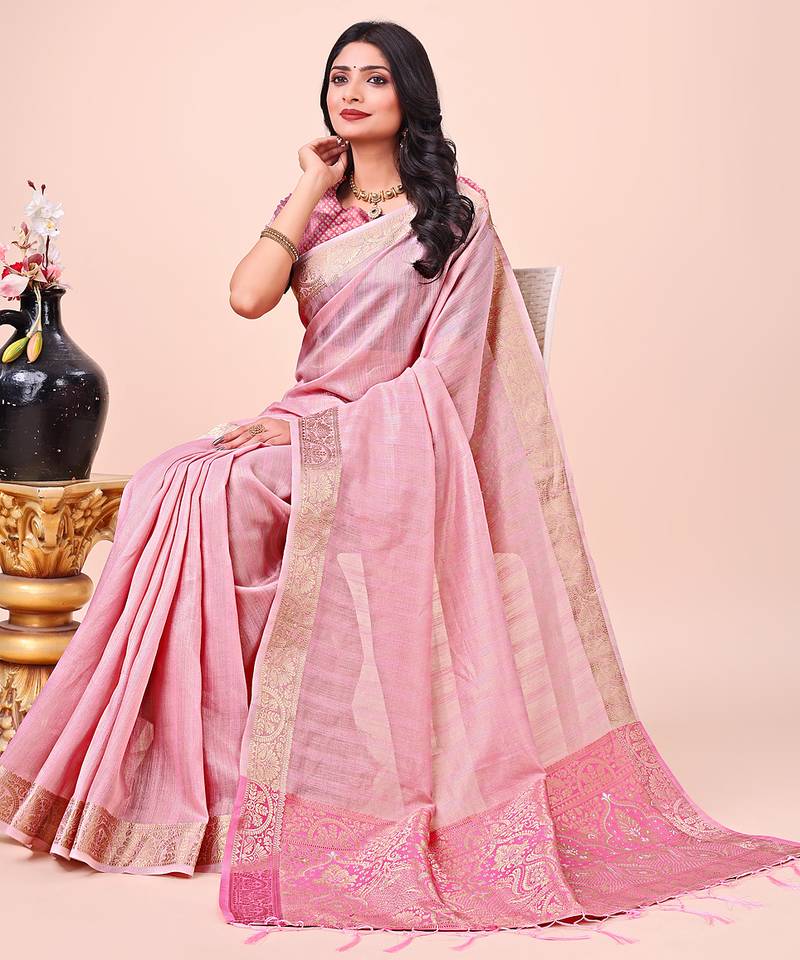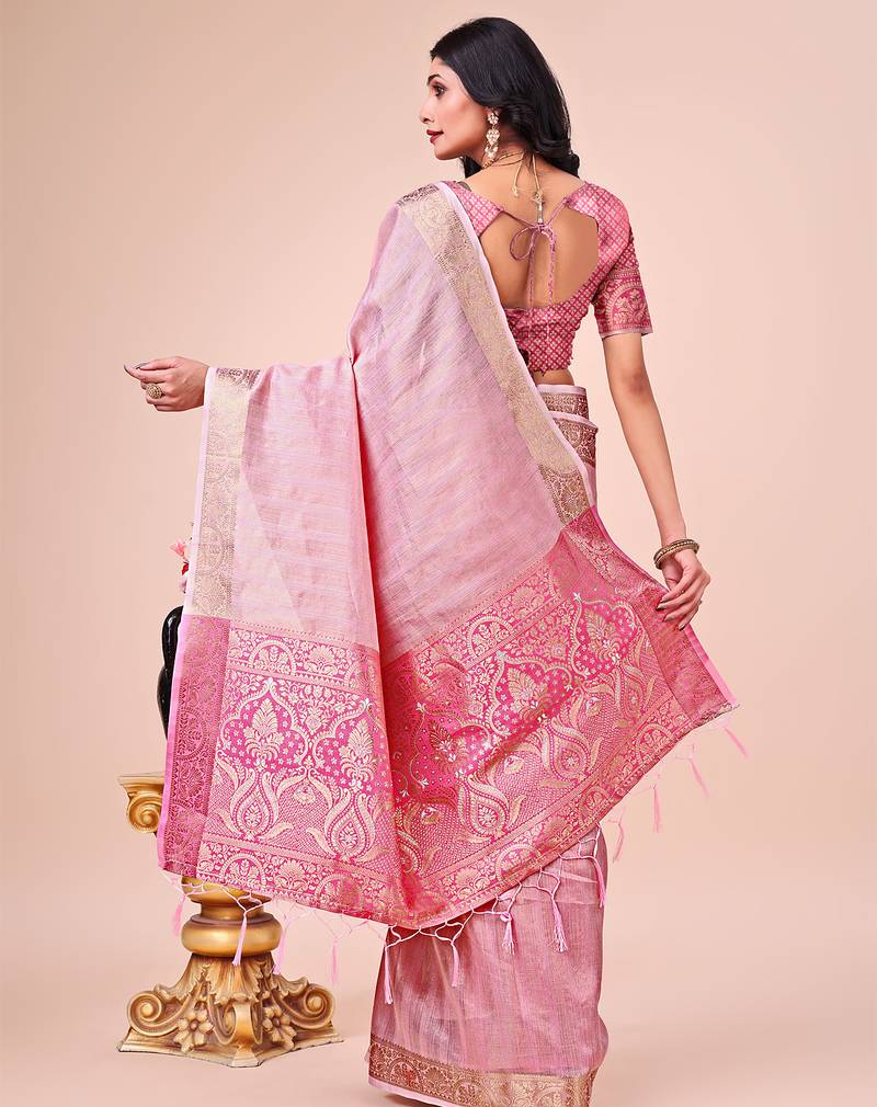 | Product Name | Pink Color Orgenza Zari Woven Saree With Blouse | |