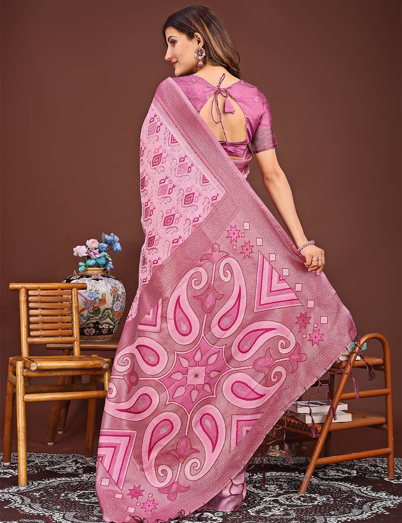 | Product Name | Pink Color Woven Linen Cotton Saree | |