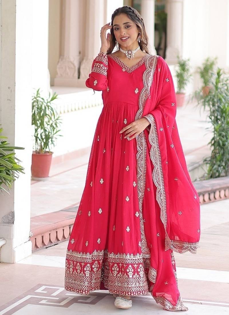 | Product Name | Pink Color Zari Sequins Embroidered Work Vichitra Silk Gown Dupatta | |
