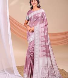 Purple color embroidered & woven linen cotton saree