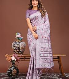 Purple color linen cotton woven saree with blouse