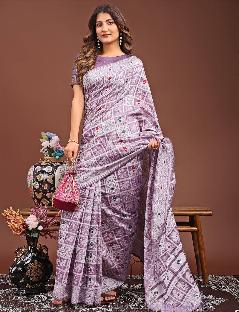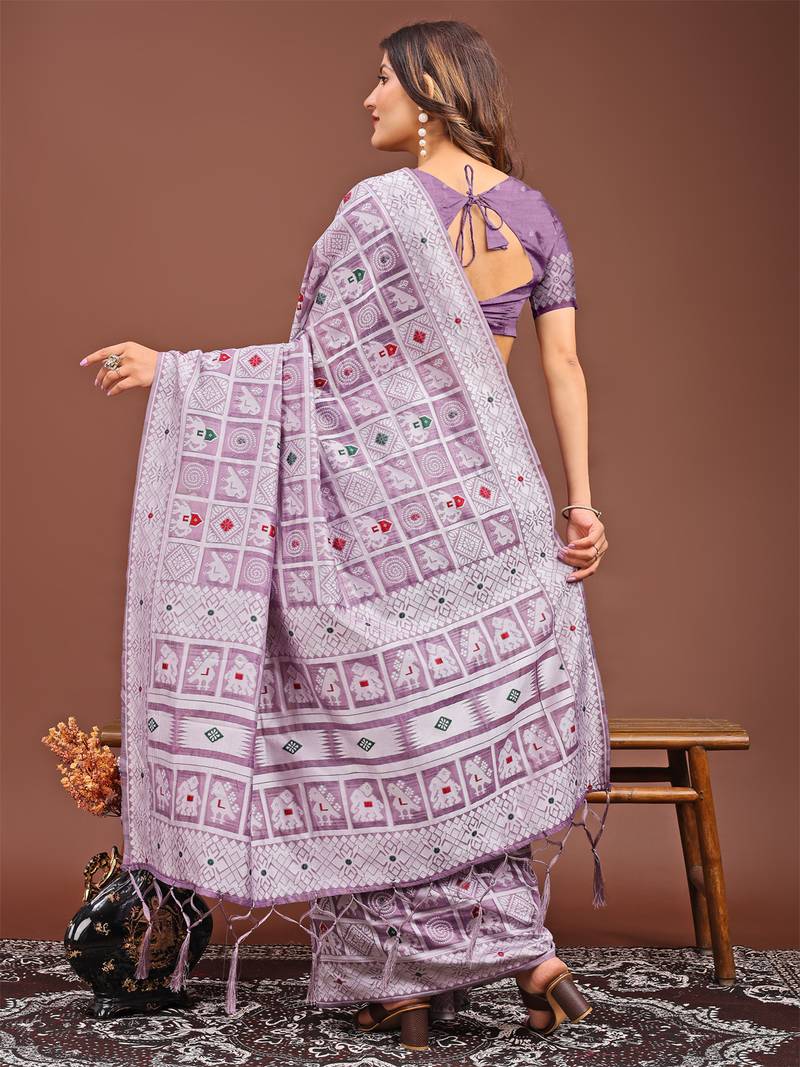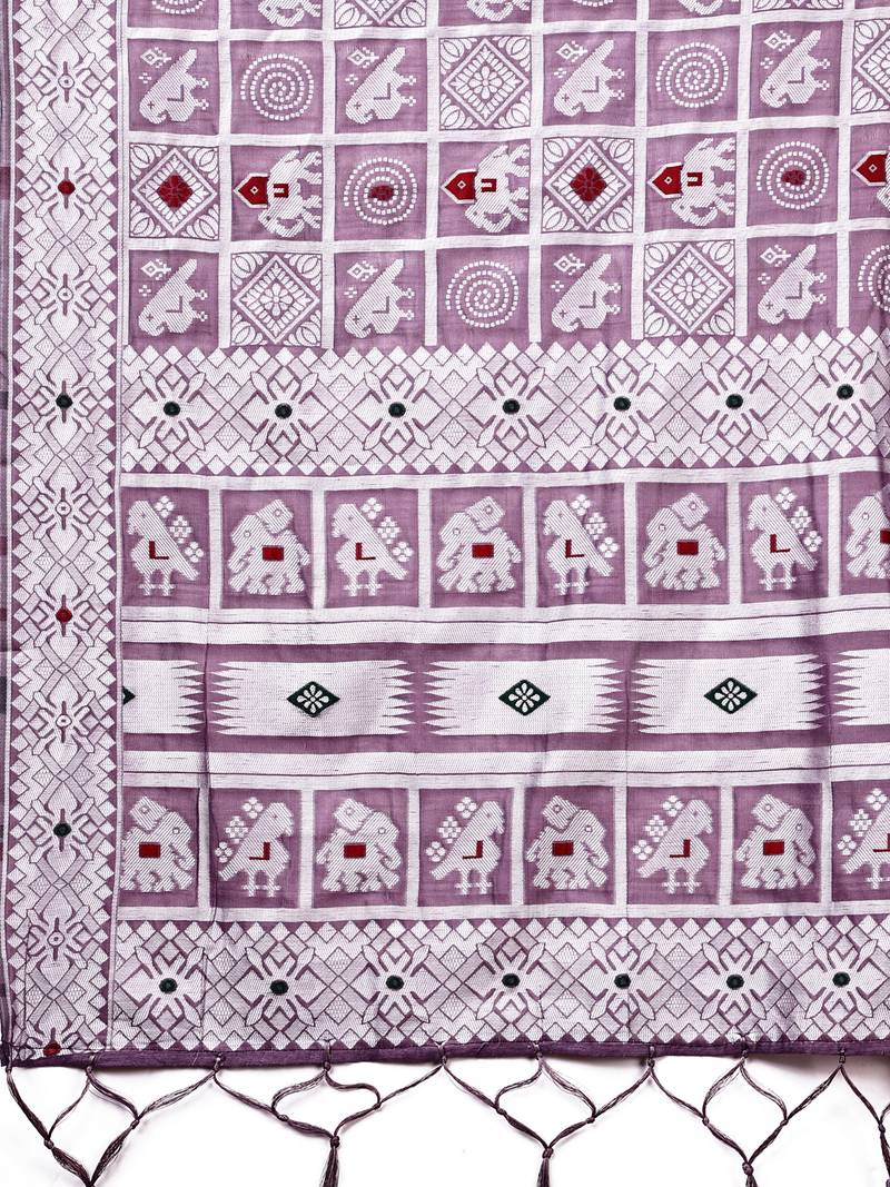 | Product Name | Purple Color Linen Cotton Woven Saree With Blouse | |