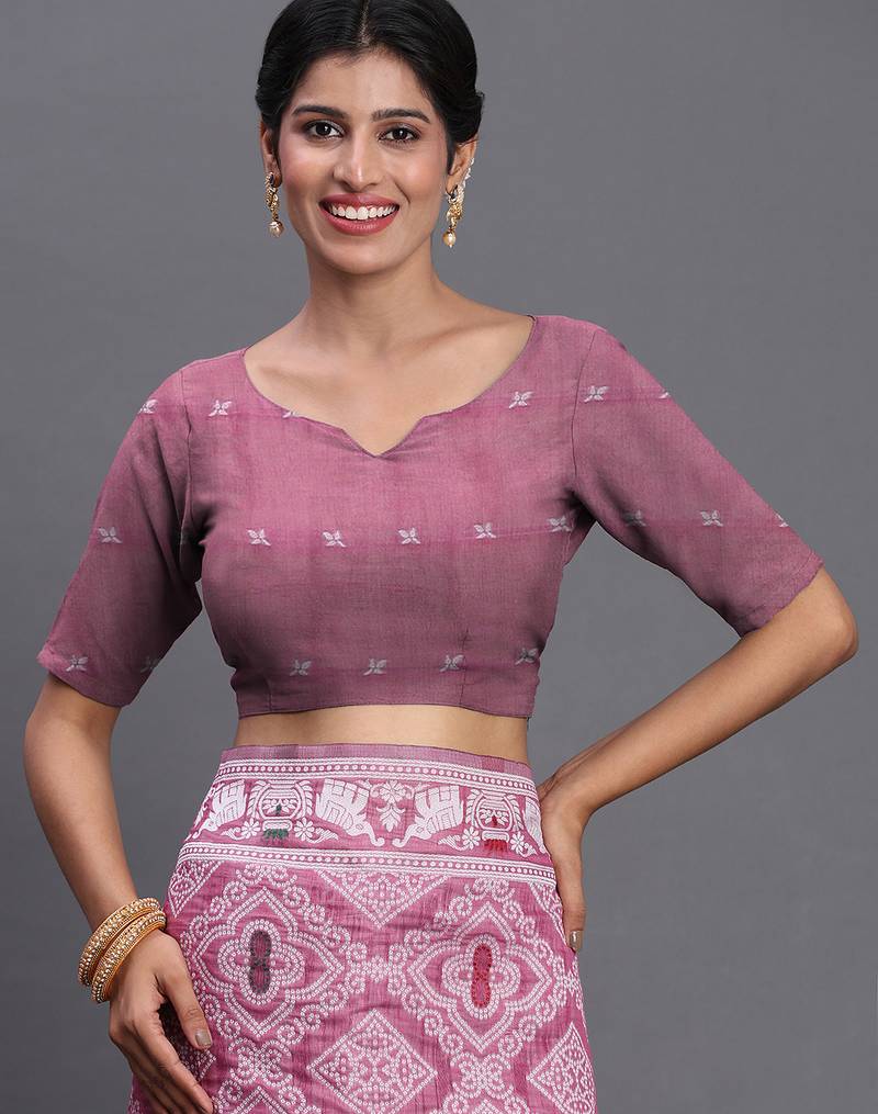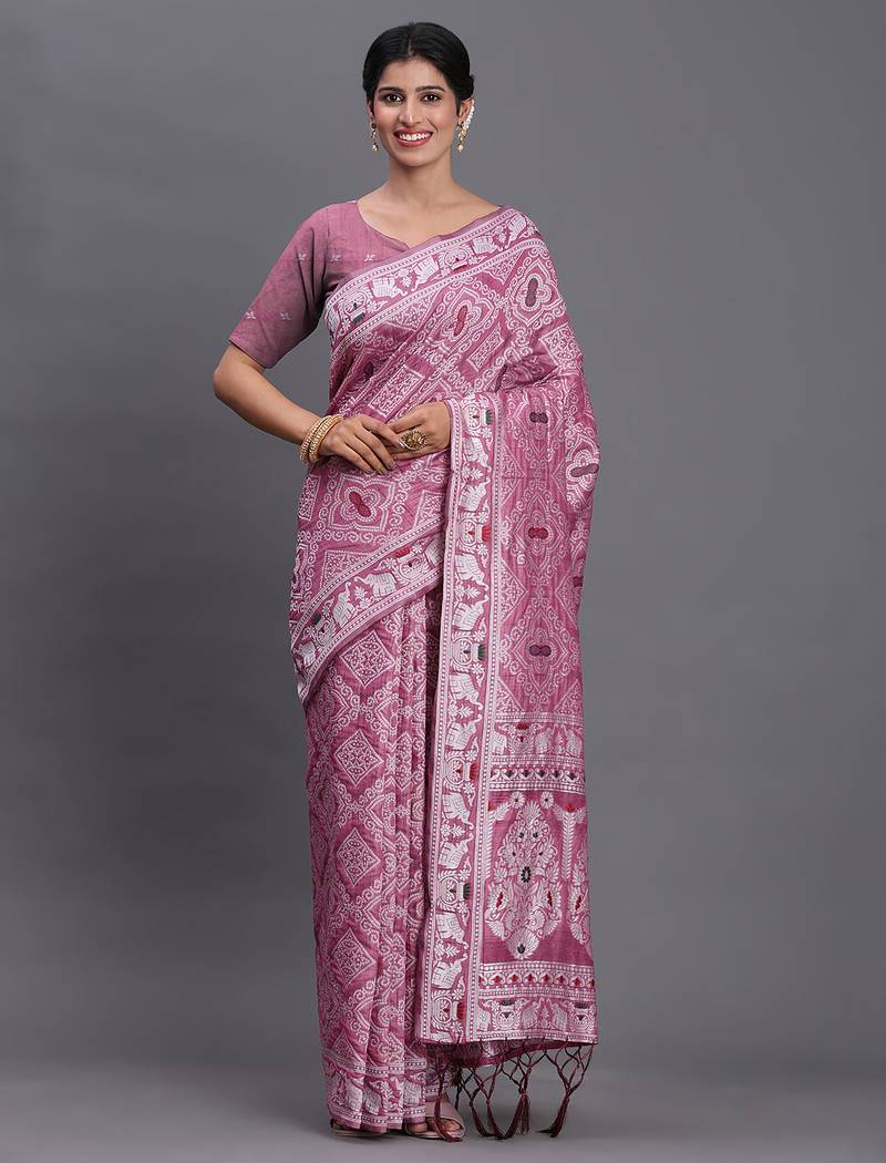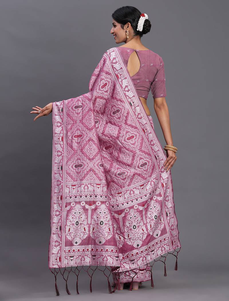 | Product Name | Pink Color Woven Linen Cotton Saree With Blouse | |